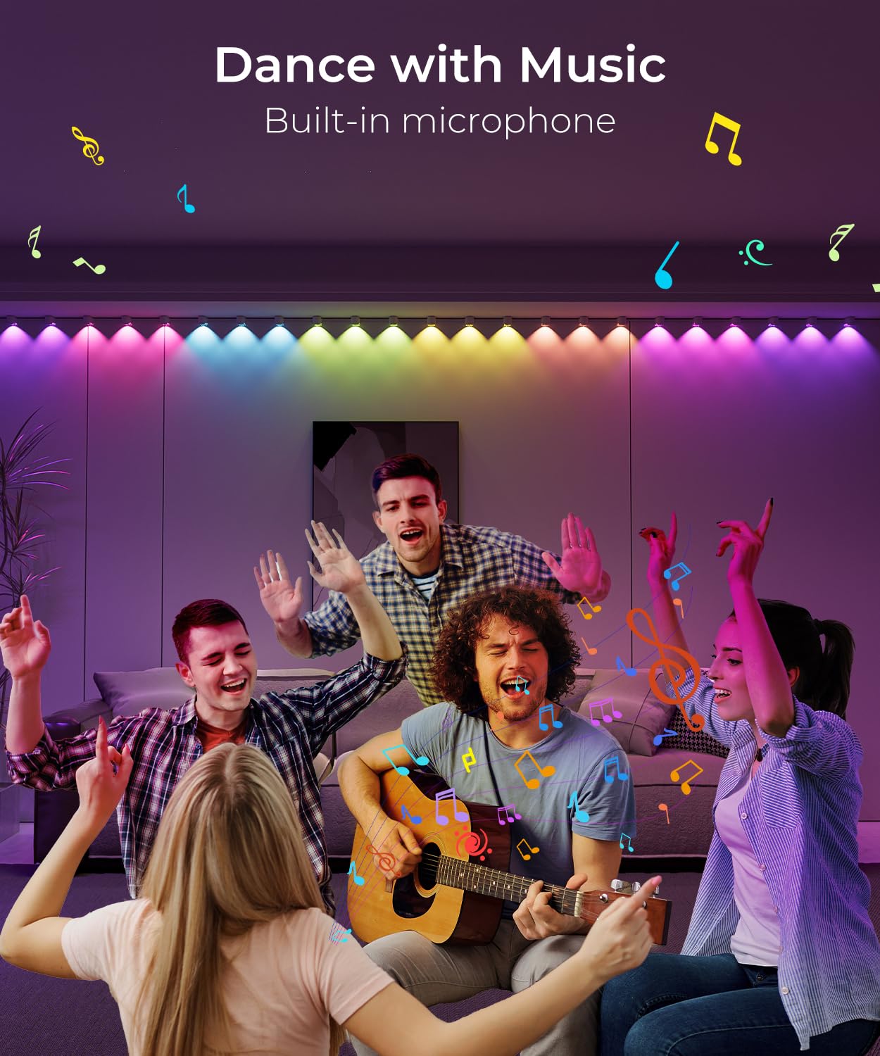Choose from 111 scenes or build your own. Lights sync with music for parties and daily vibes—perfect for Valentine’s Day, Easter, Halloween, Thanksgiving, Christmas and more.